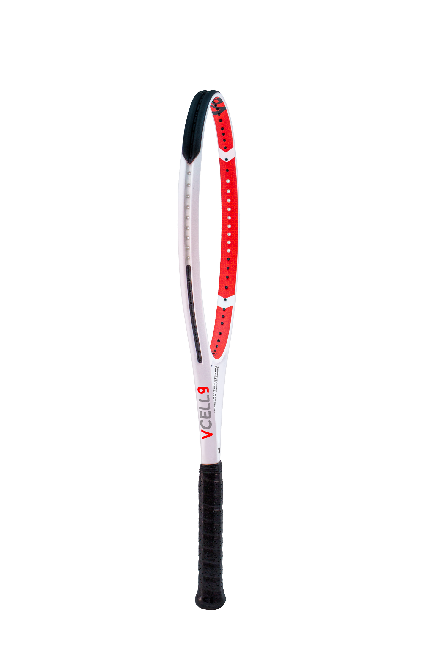 Furthermore, the V-Cell 9 also features REVA, more V-Cell material, VTEX butt cap, Super Grommets and V-Sensor Handle for great feel. It weighs 310g / 10.9oz, has a 645cm2 / 100in2 head, 24-26-23mm beam with a 68.5cm / 27in length and a 32cm / 0.9in head light balance. It has a 16x19 string pattern.