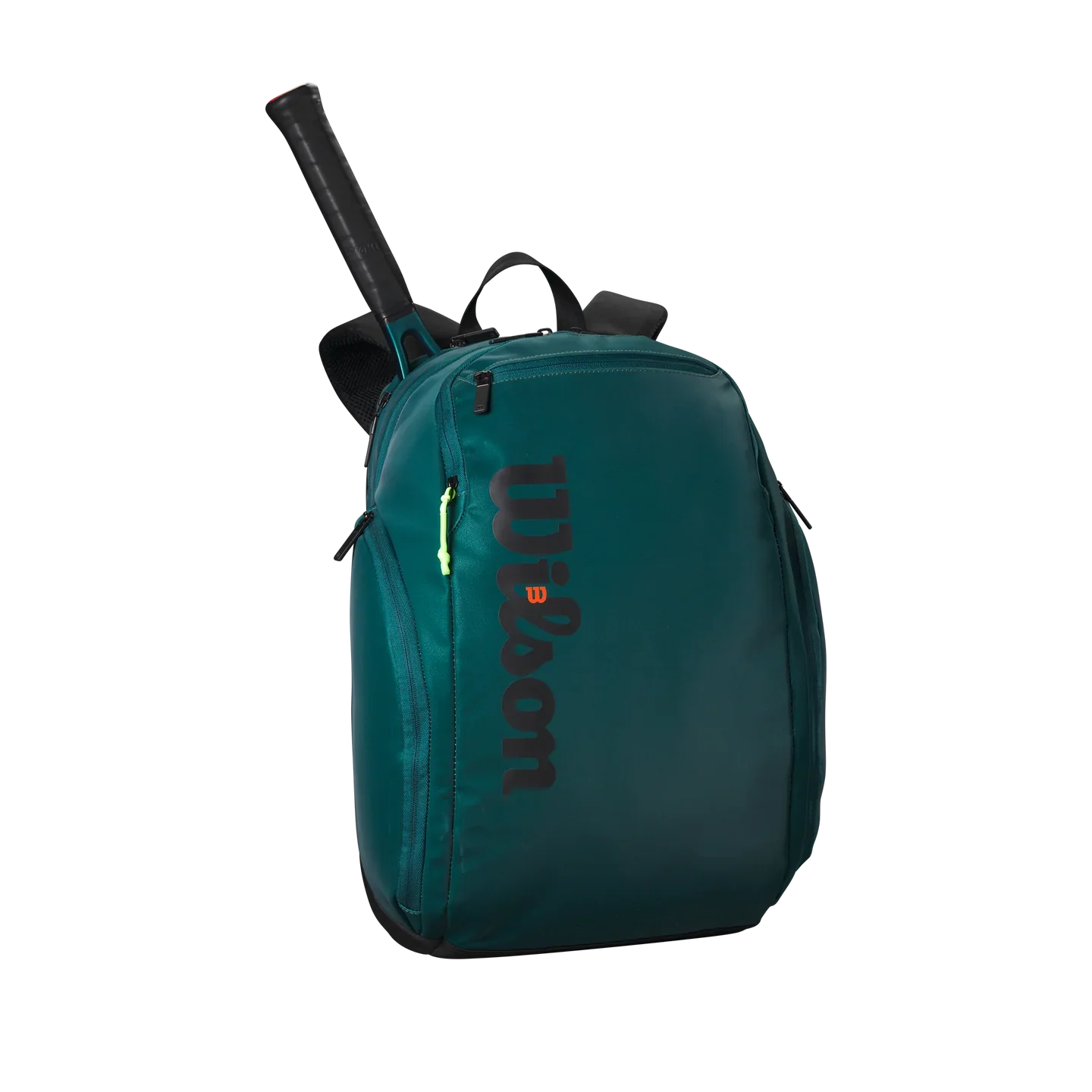 Prized for its best-in-class functionality for tennis players, Wilson's Blade Super Tour Backpack provides hands-free convenience and room for all the essentials. Inspired by the Blade V9's sleek, dynamic design, this spacious backpack has a padded compartment for up to two rackets and another for a laptop or tablet. A ventilated pocket is designed to separate a pair of shoes from the rest of the bag. Other compartments store gear, equipment and personal effects. Locking zippers keep valuables secure, while the adjustable straps make it comfortable to carry.